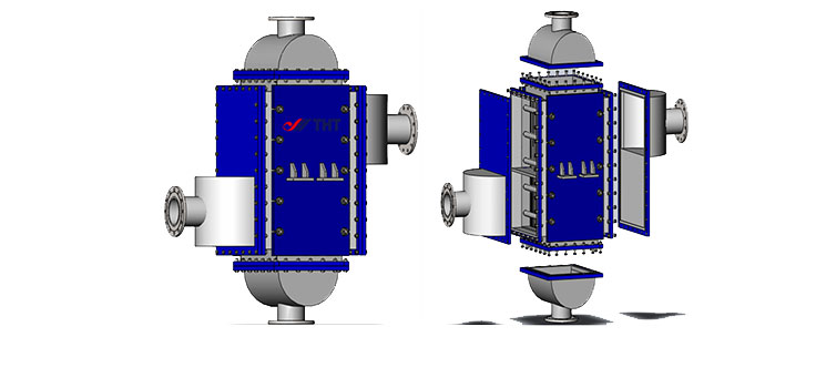 3、THT巨元的焊接板式換熱器其工況適應性強,焊接板式換熱器可根據(jù)不同的工藝要求,靈活地設(shè)置流程組合。耐溫承壓能力強,適應于特殊介質(zhì)。與可拆式板式換熱器相比,由于采用了焊接結(jié)構(gòu),消除了高溫及特殊介質(zhì)工況對密封墊片的影響和腐蝕,提高了使用溫度、壓力及適應介質(zhì)的能力。使得設(shè)備在工況運行中高效、安全。由于沒有大的框架,板框式換熱器較可拆式板式換熱器更為緊湊,可以節(jié)約大量空間及建筑費用。